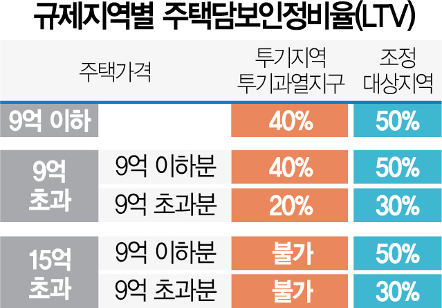 | 투기지역 및 투기과열지구 | 1주택자 : 9억까지 주택가액의 40% 9억 초과분 금액의 20% 다주택자 : 불가능 |