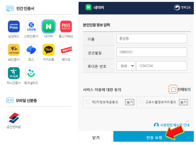 3. 네이버나 카카오톡, 토스 등으로 간편하게 인증할 수 있습니다. 저는 네이버로 진행할 거예요.